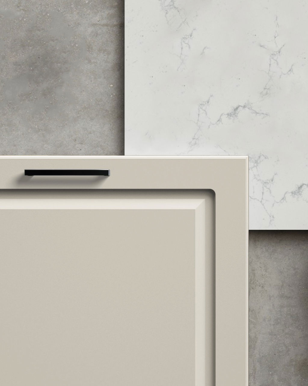 Malt dør av 19 mm MDF-plate med frest profil og lett avrundet kant. Finnes også som vitrineskap med klart glass for høyskap. Tilgjengelig i hvitt eller i en av våre farger.