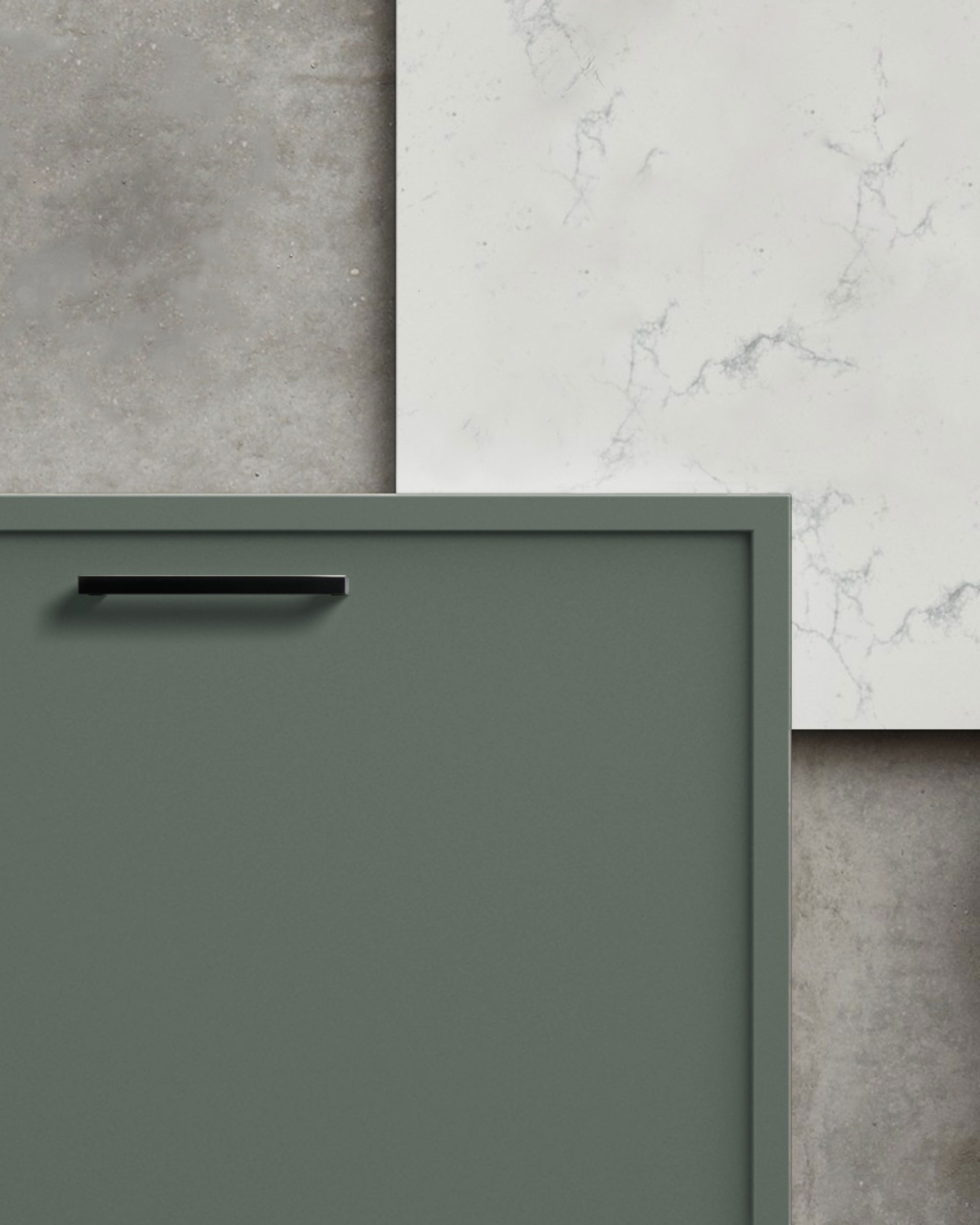 Malt 22 mm MDF-plate med smal rammeprofil. Tilgjengelig i hvitt eller en av våre farger.