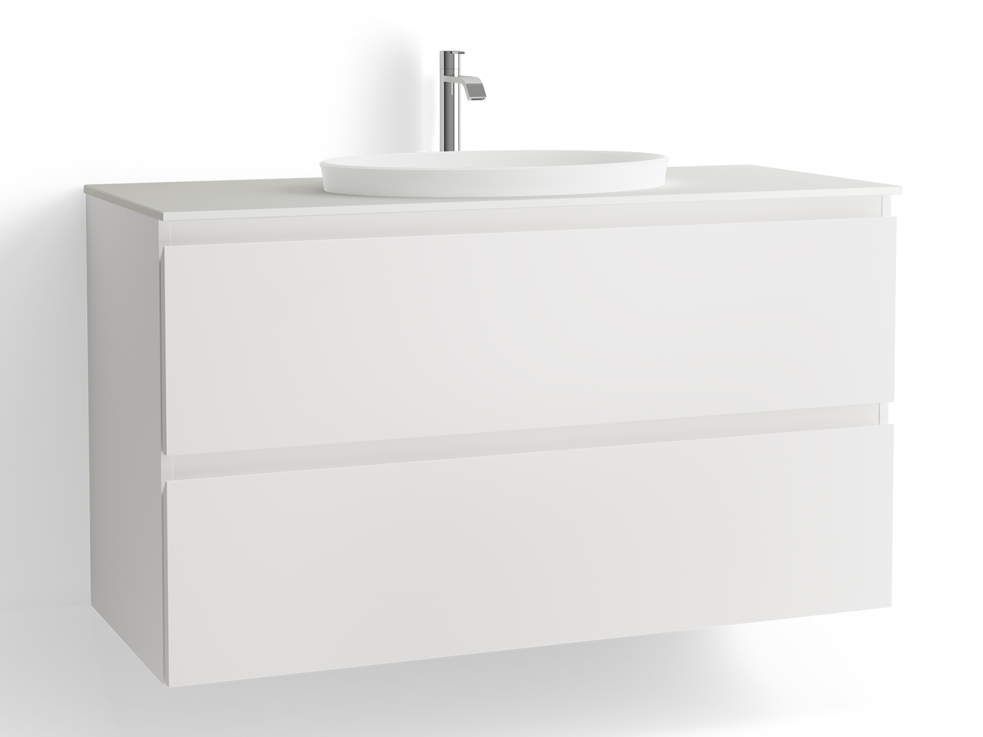 Kommod med lådor med dämpning och fasad greppkant. Lådindelning Mejram och gummimatta ingår. 230V eluttag går att beställa som tillval till låda, lägg till U efter artikelnumret.