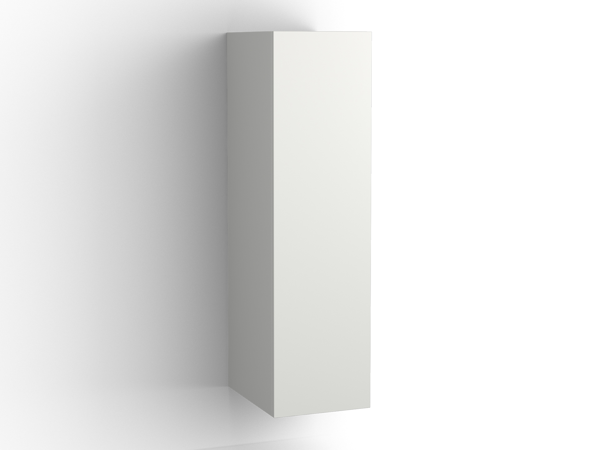 Halvhögt skåp i bredd 300 mm. Valfri hängning av lucka. En fast hylla och två flyttbara glashyllor ingår. Topplatta kan beställas som tillbehör.