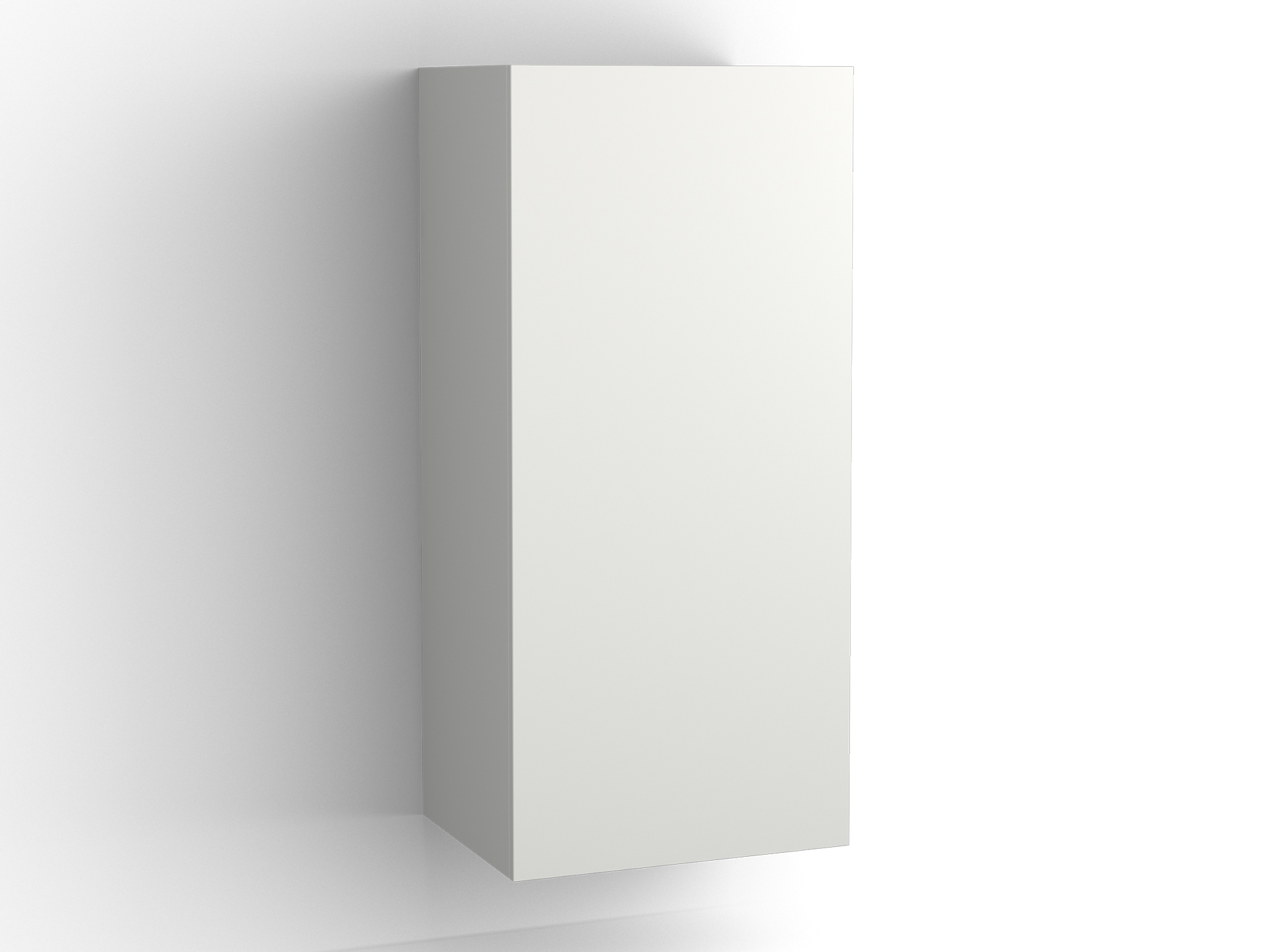 Halvhögt skåp i bredd 500 mm. Valfri hängning av lucka. En fast hylla och två flyttbara glashyllor ingår. Topplatta kan beställas som tillbehör.
