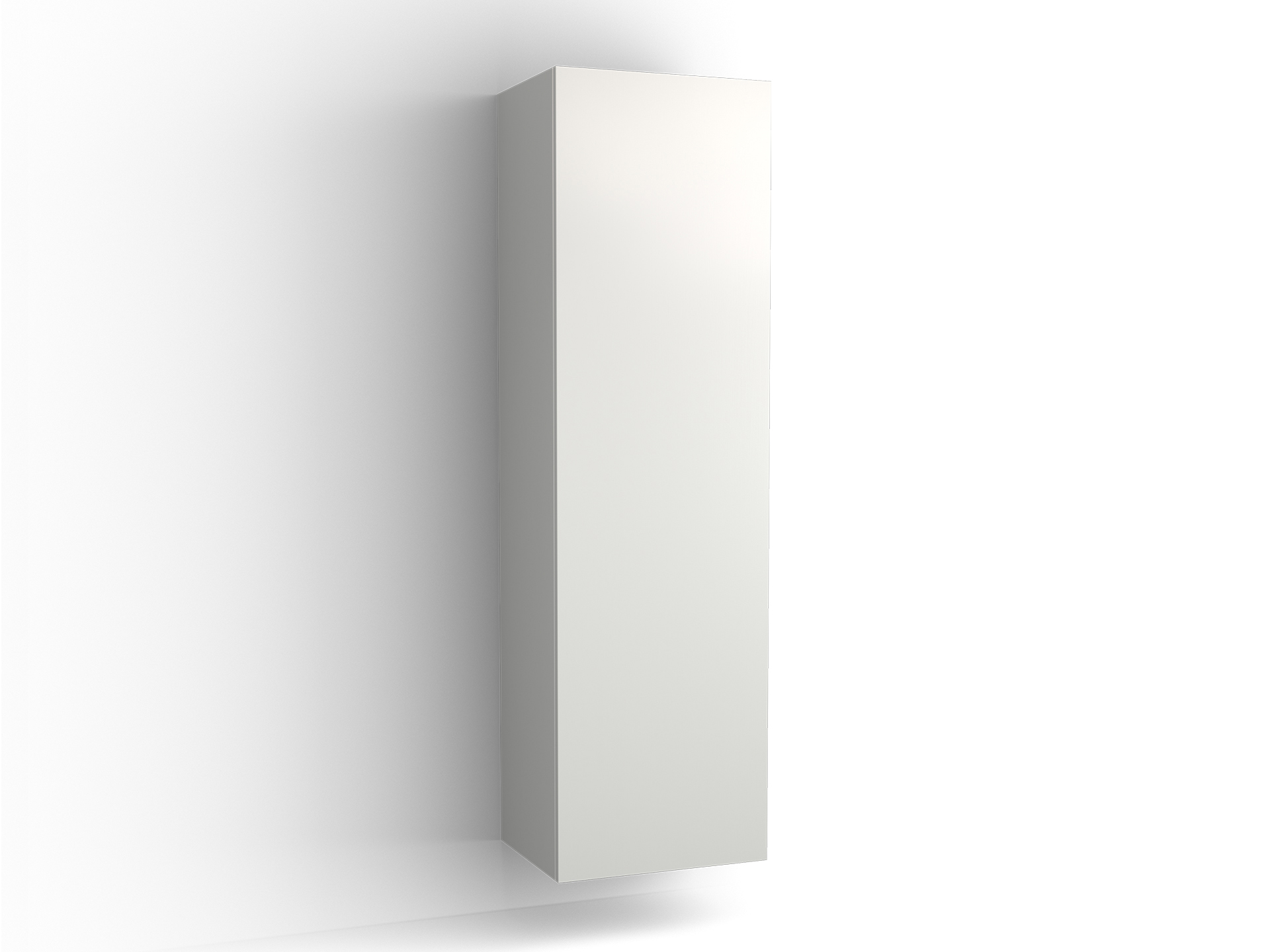 Högskåp i bredd 500 mm. Valfri hängning av lucka med pushfunktion. Indragna hyllor i skåpets övre del och förvaringsfack på luckans insida. En fast och fyra flyttbara glashyllor ingår.