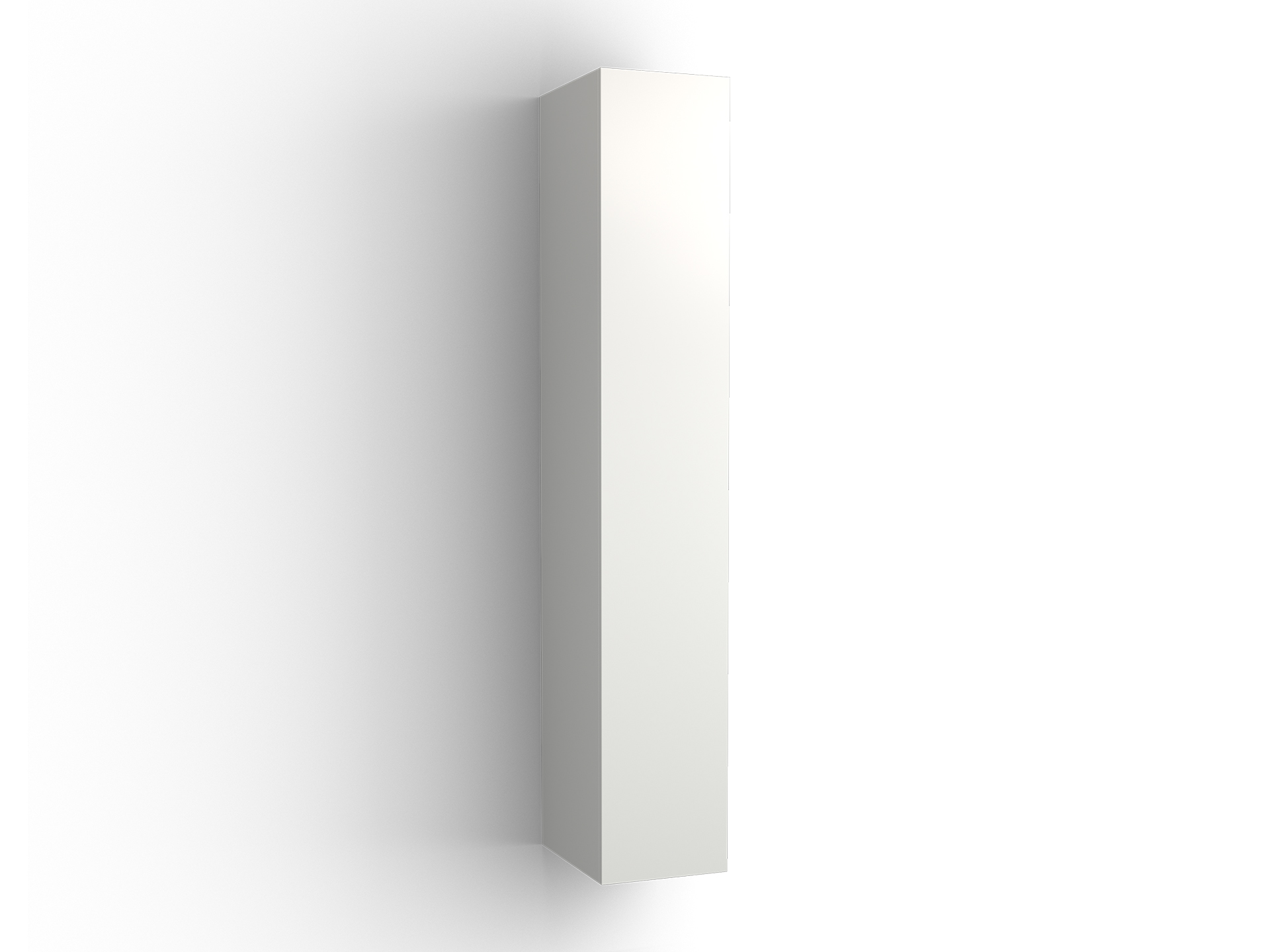 Högskåp i bredd 300 mm. Valfri hängning av lucka. En fast hylla och fyra flyttbara glashyllor. Handtag ingår ej.