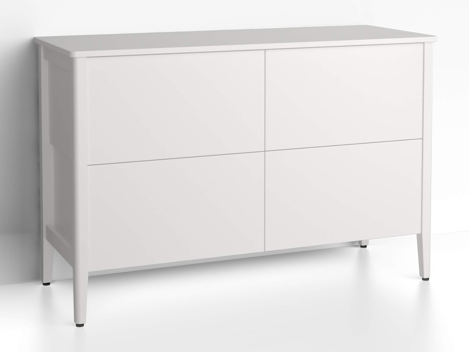 Fin förvaringsmöbel med bengavlar som ska monteras mot vägg. Topplatta ingår ej, komplettera med topplatta Anno 1300. Består av fyra lådor med dämpning och gummimatta. Handtag ingår ej.