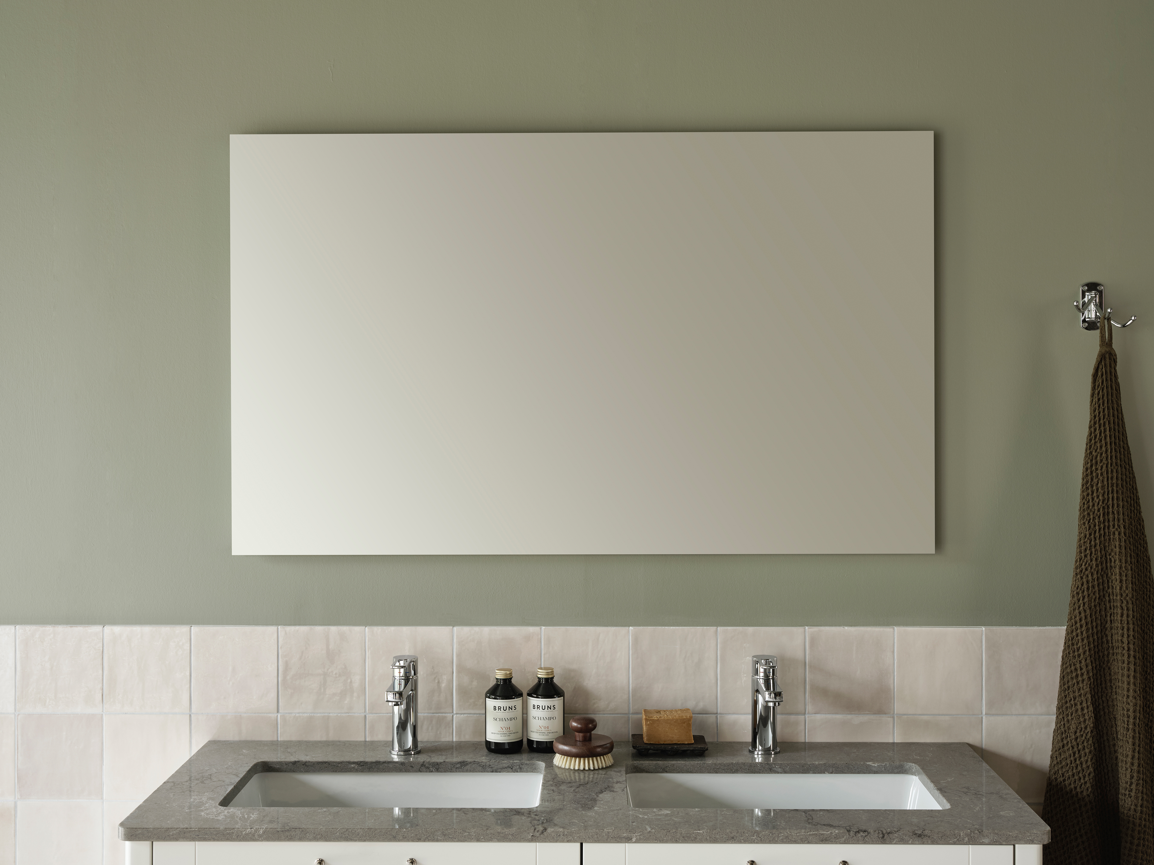 Spegel Billan är en rektangulär spegel med blank aluminumram. Utrymme finns bakom spegeln för koppling av el. Spegeln är vändbar och har dold upphängning. Belysning finns som tillbehör.