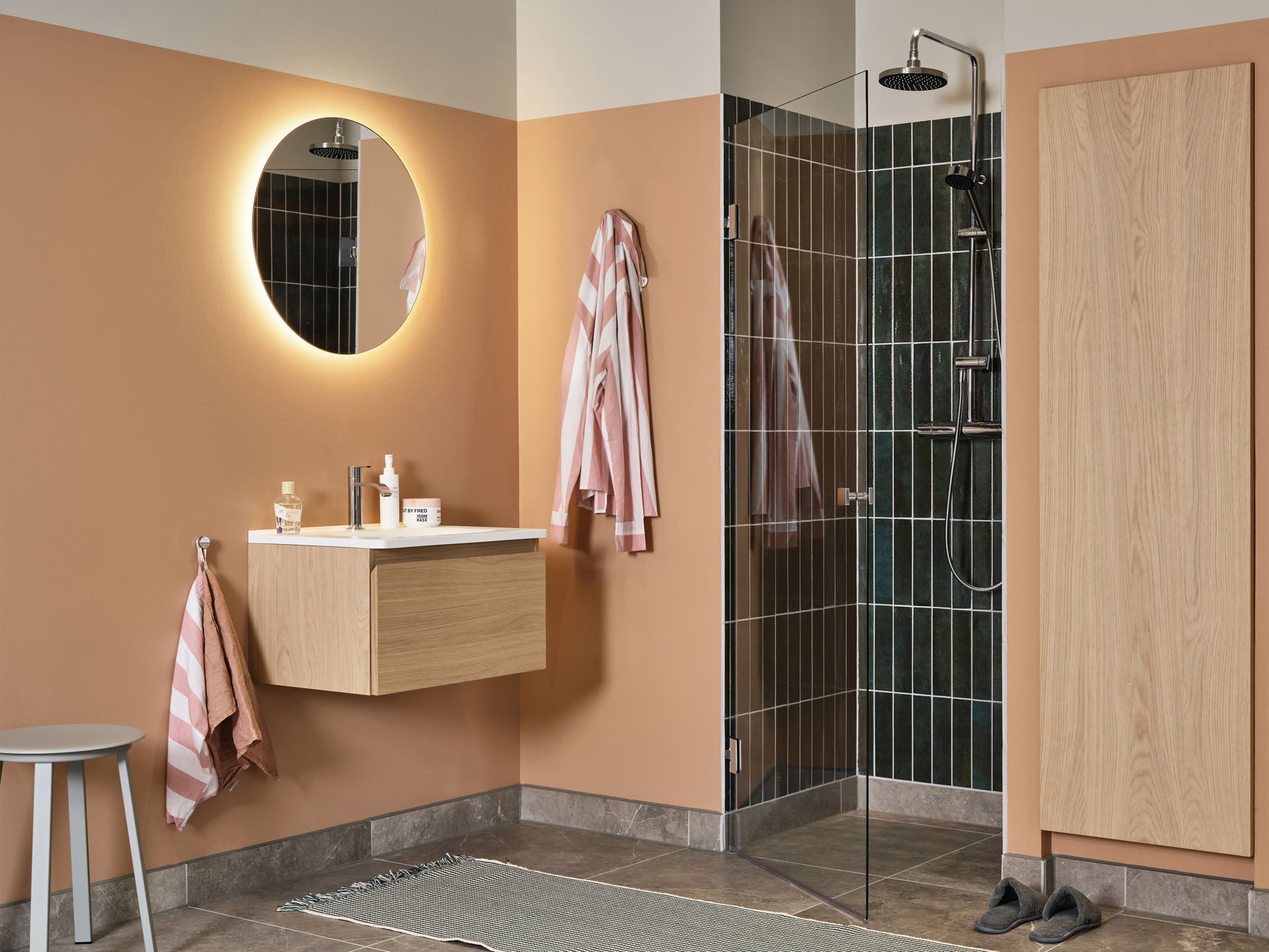 Spegel Säven är en rund spegel med LED-belysning som dekorljus.
