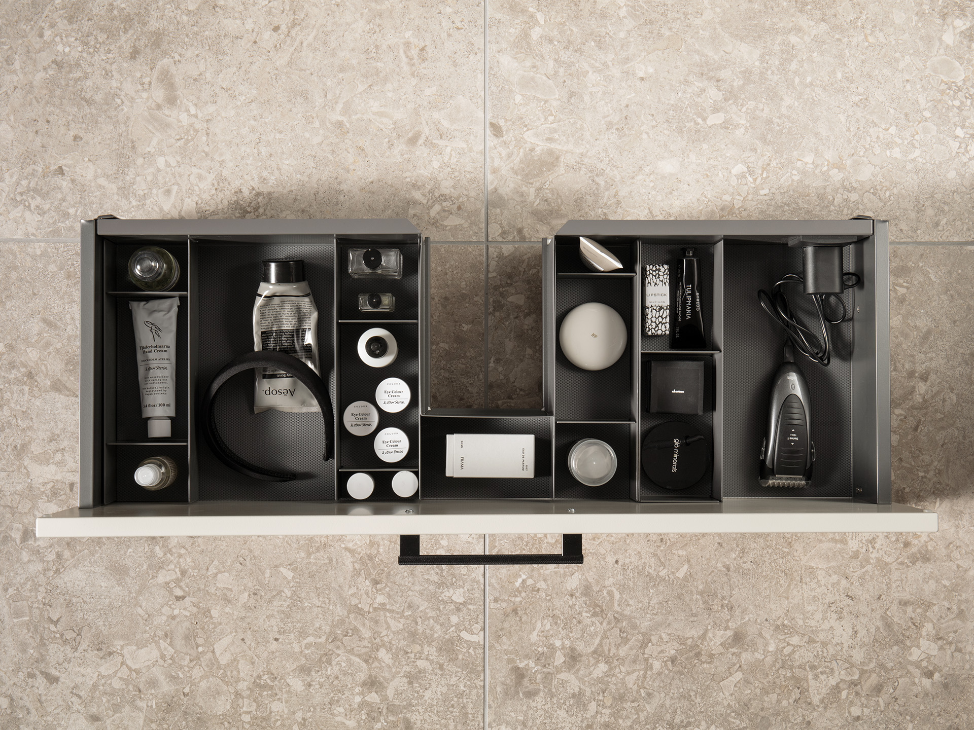 Inredningspaket Kapris D300 Large passar till Mezzo bredd 600, 900 och 1200 mm. Låddjup 300 mm. Färg antracitgrå. Paketet består av följande artiklar: 4 st lådavdelare art.nr 5081062 och 4 st insats Kapris art.nr 5081065. Gummimatta ingår till både lådavdelare och insats.