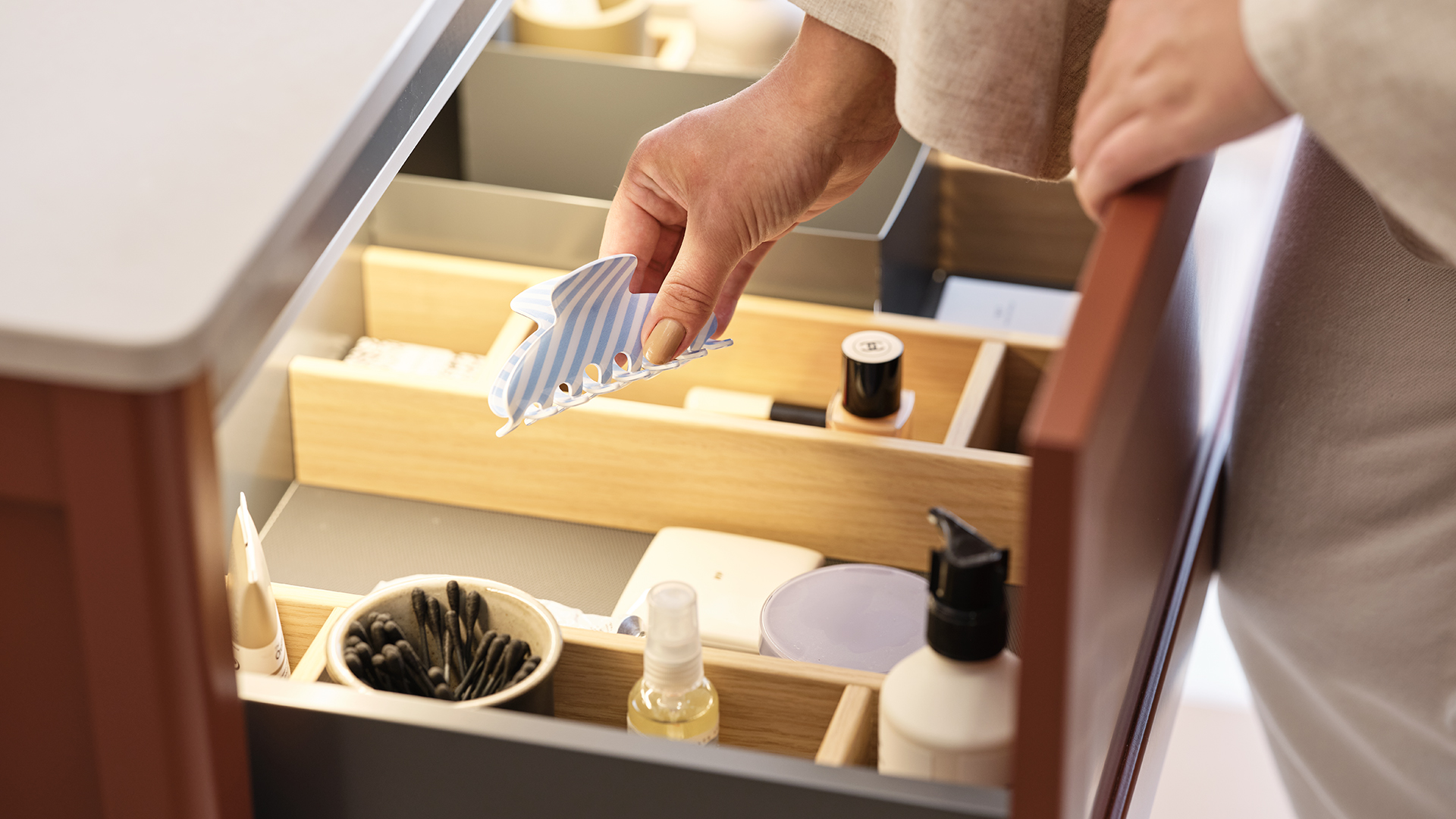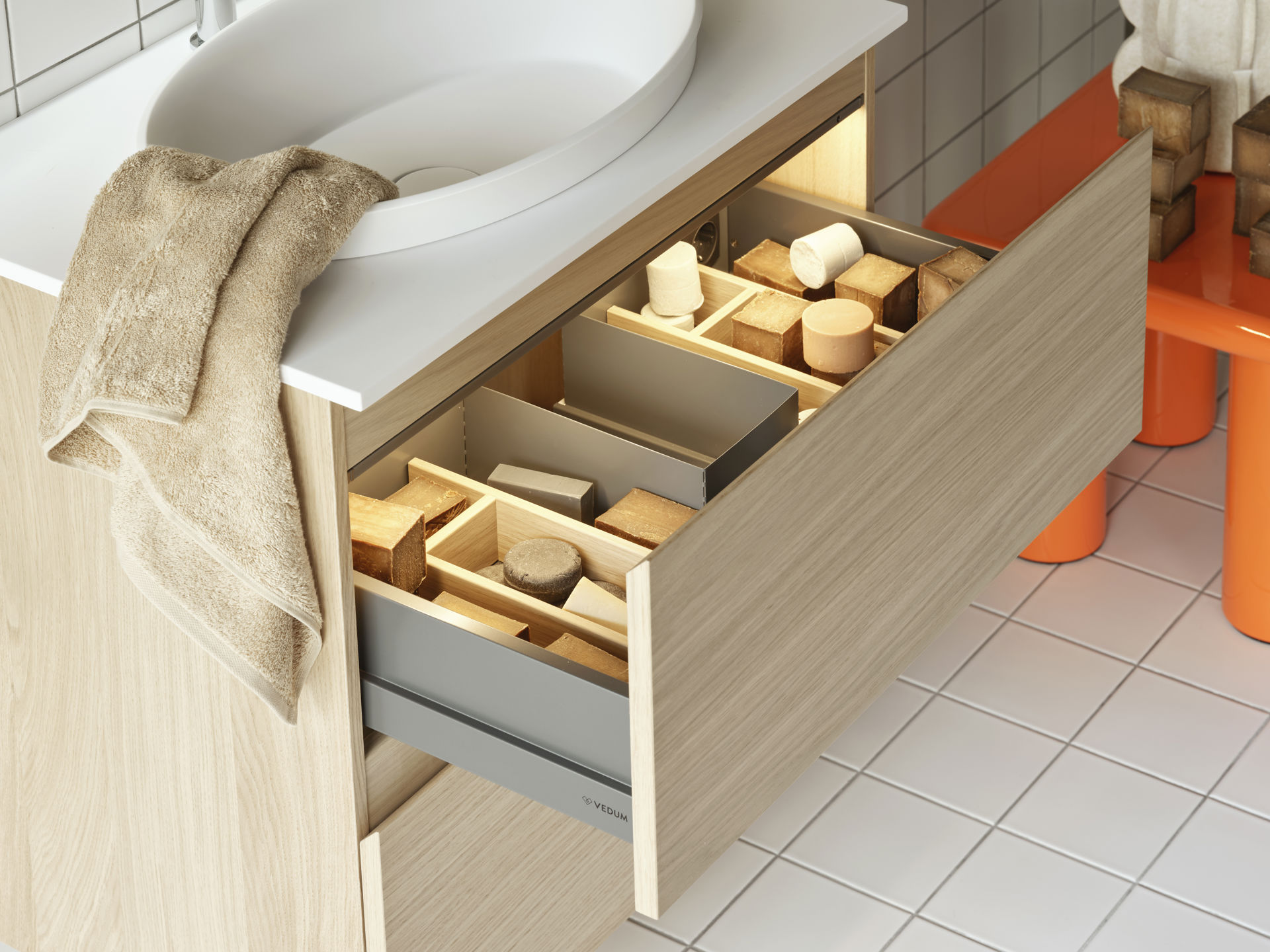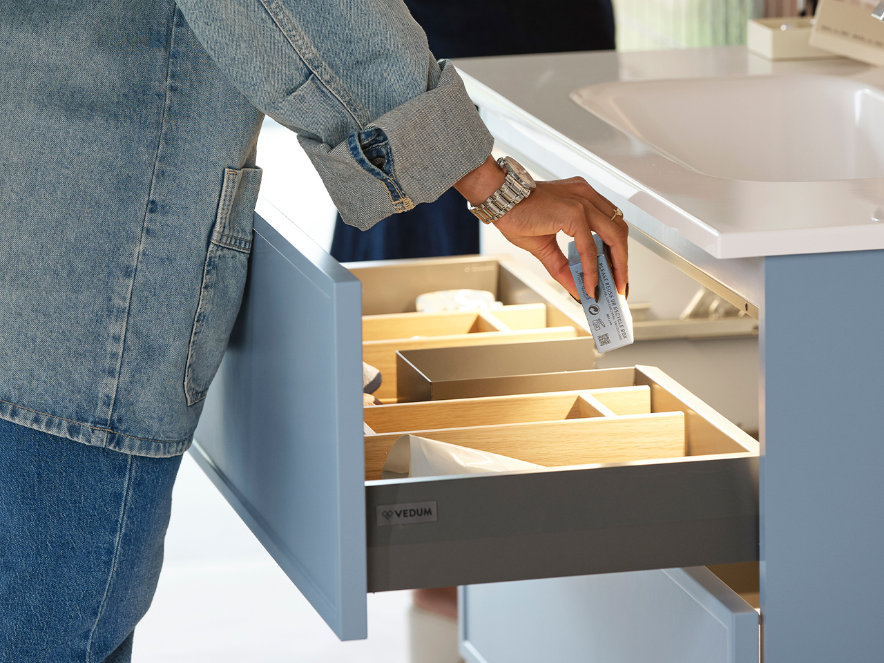 med et nytt skuffesystem i sober antrasittgrå og skuffeinndelingen Mejram med trefølelse.