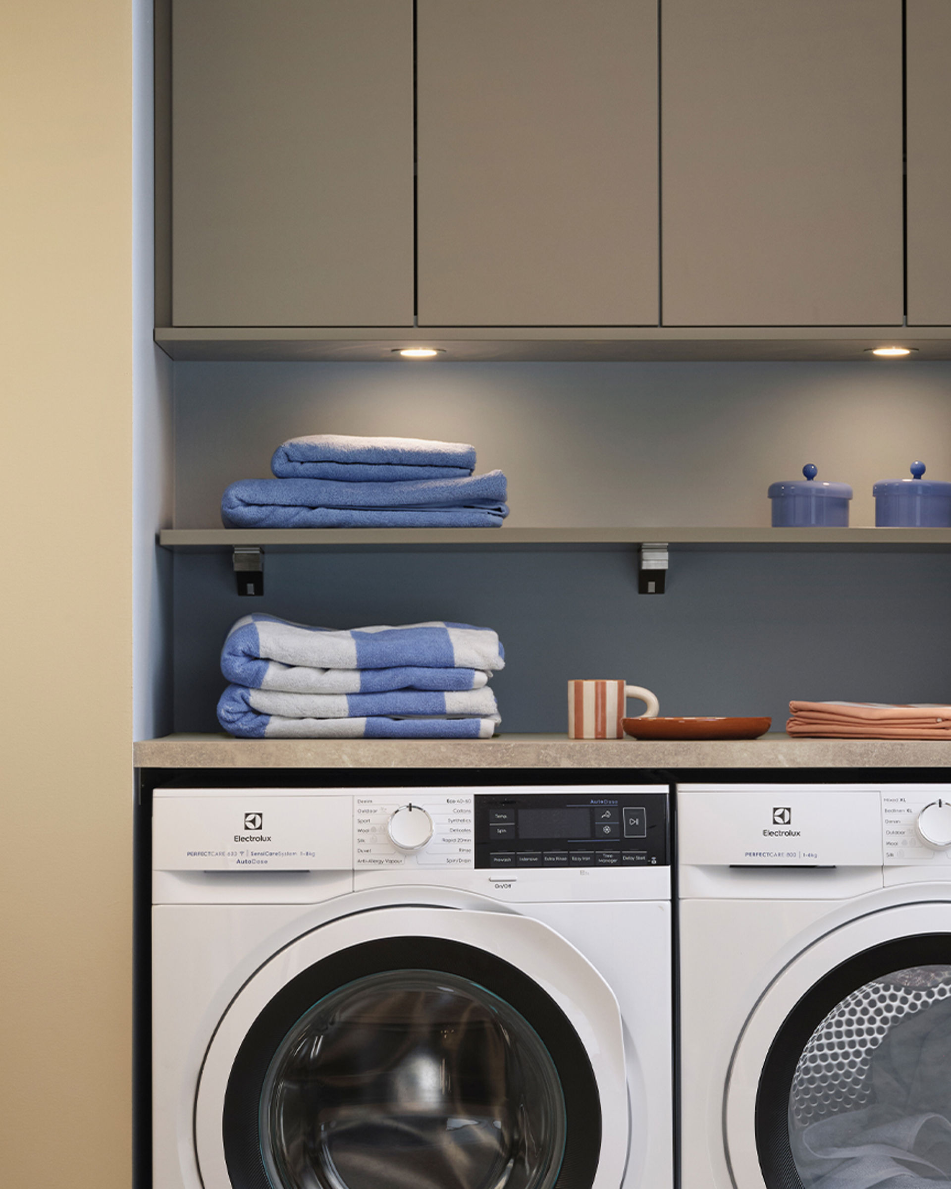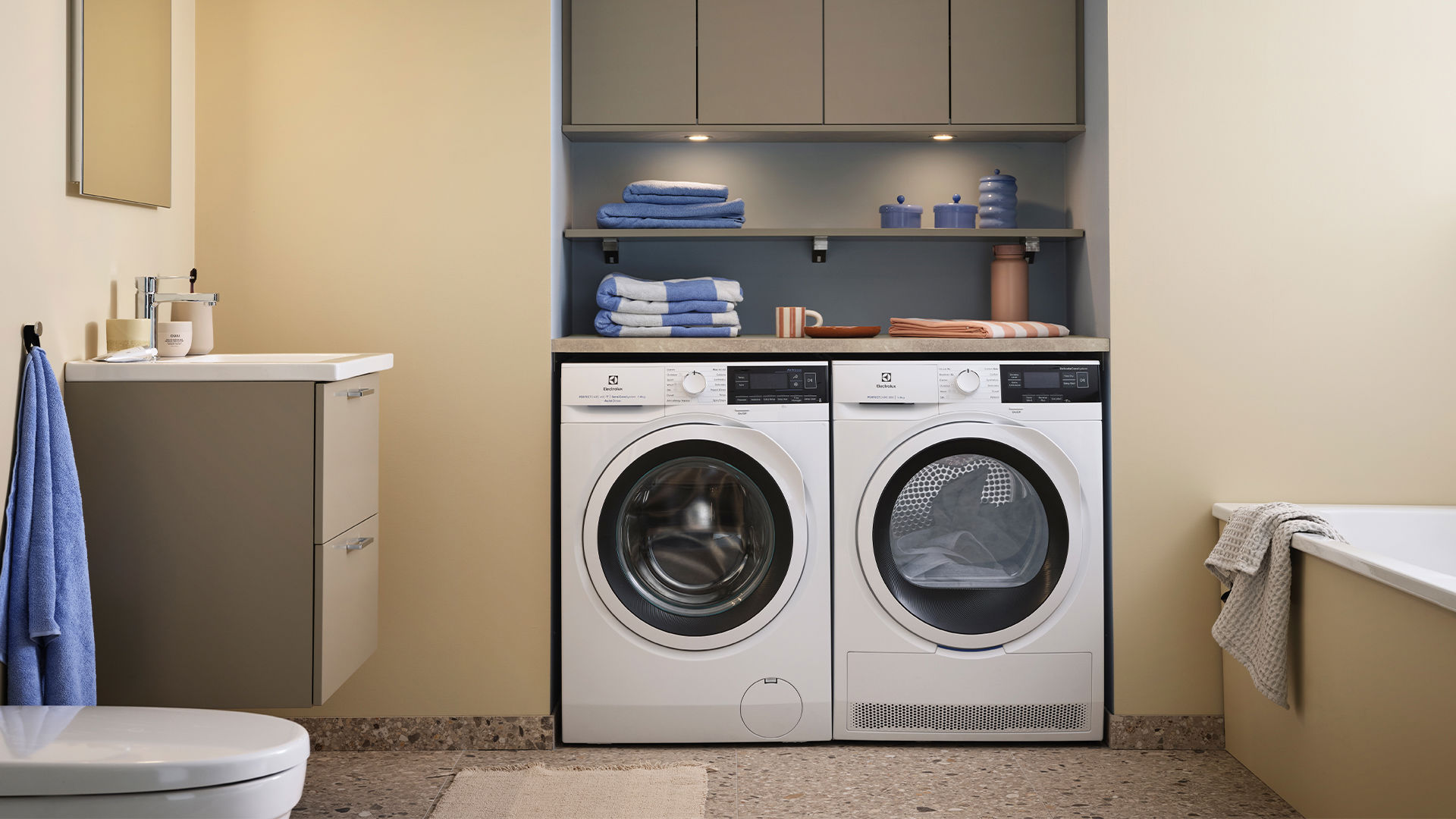 Funksjon og harmoni i fokus når baderom og vaskerom blir ett.