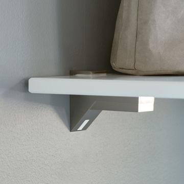Hyllbärare i rostfritt utförande som klarar hylltjocklekar från 8 mm och upp till 30 mm.