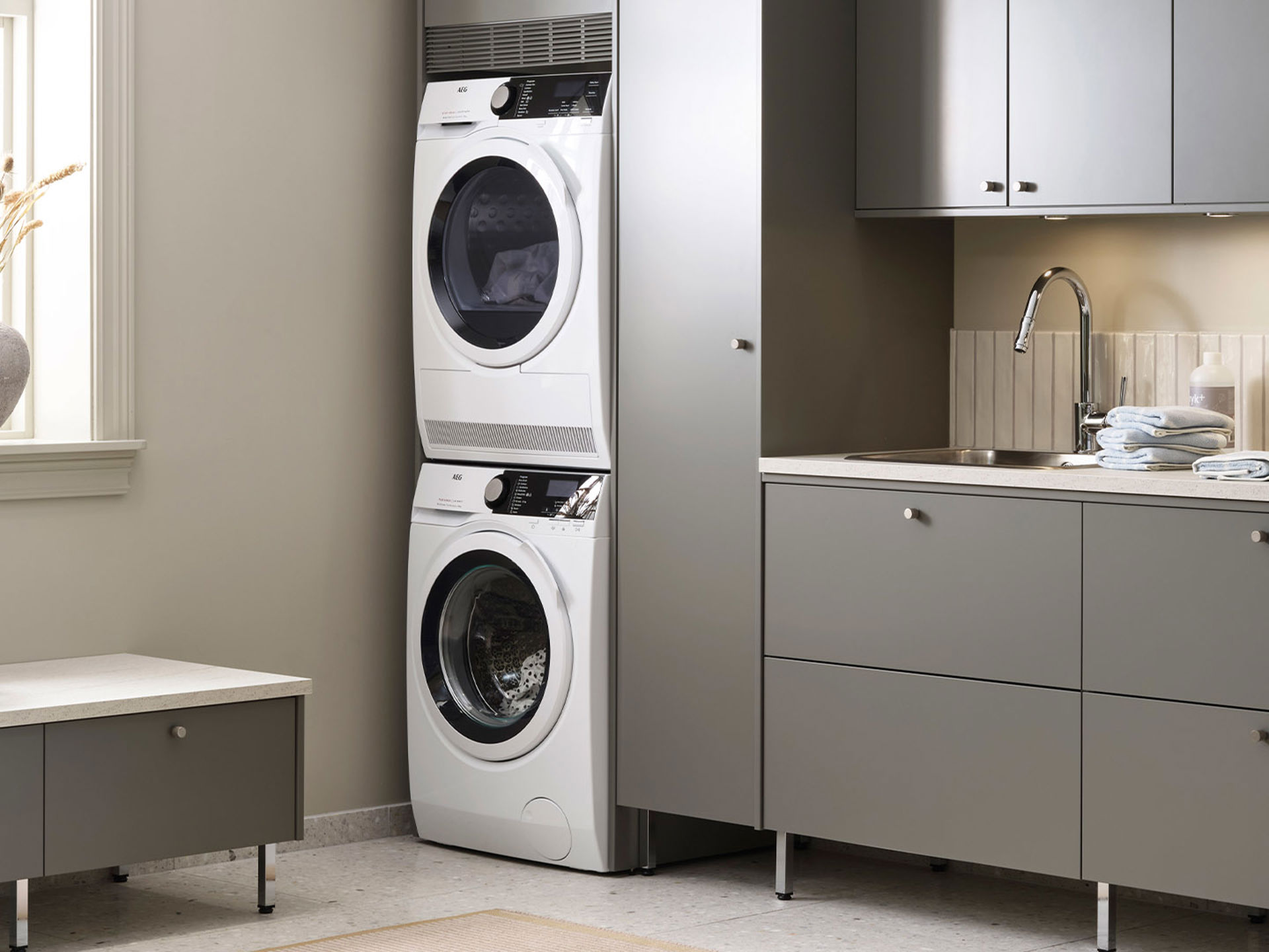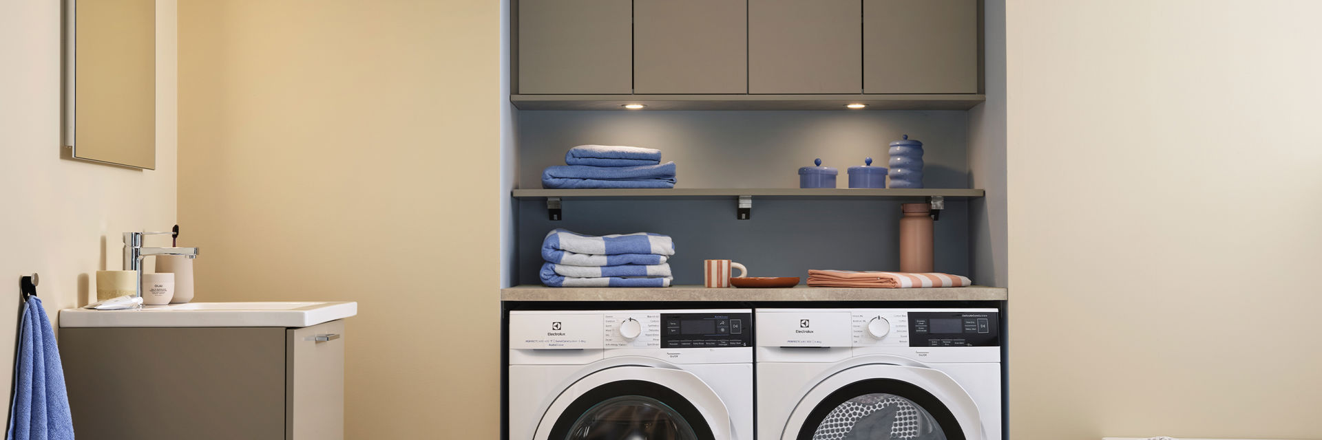 Funksjon og harmoni i fokus når baderom og vaskerom blir ett.