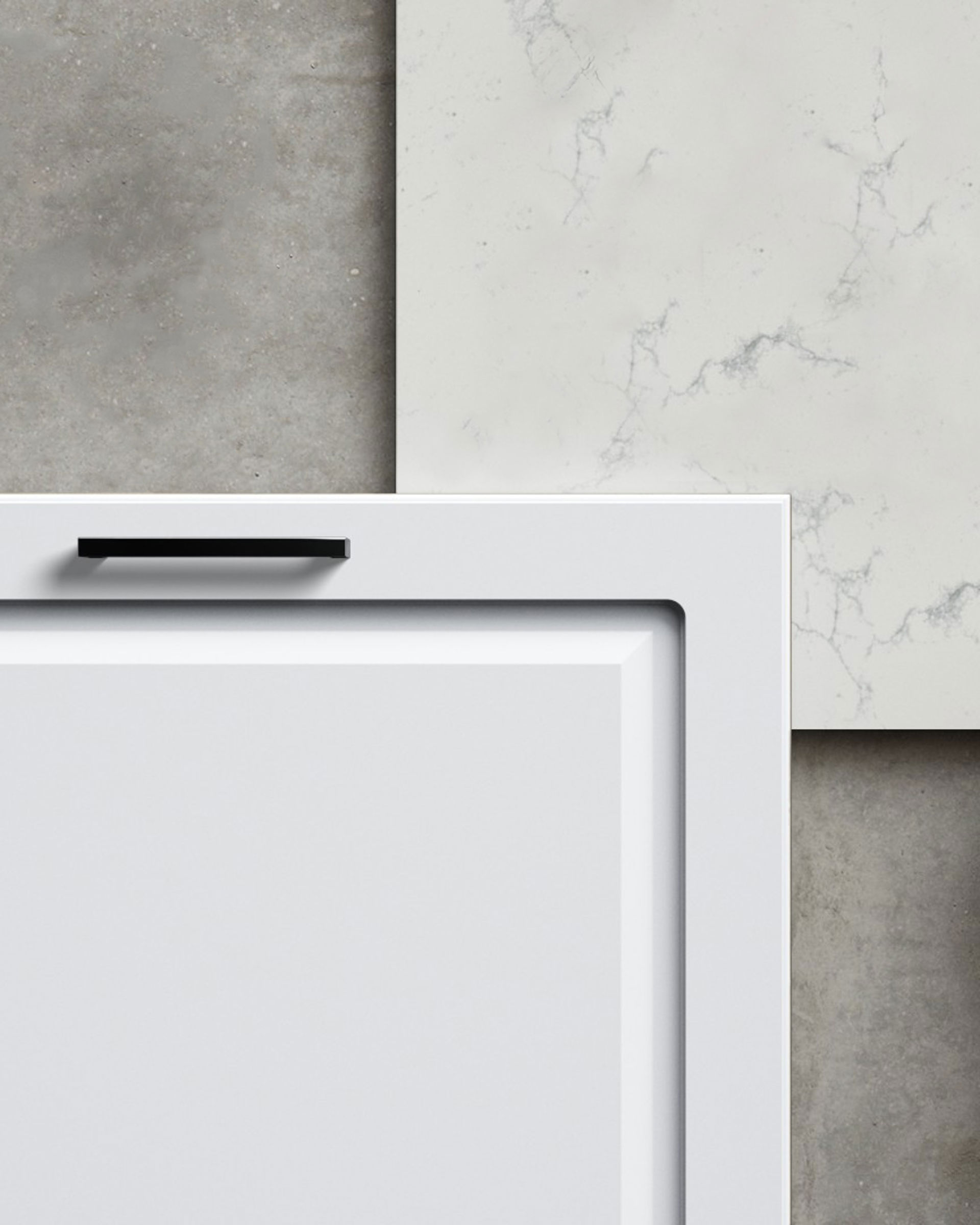 Malt dør av 19 mm MDF-plate med frest profil og lett avrundet kant. Finnes også i vitrineskap med klart glass for høyskap. Tilgjengelig i hvitt eller i en av våre farger.