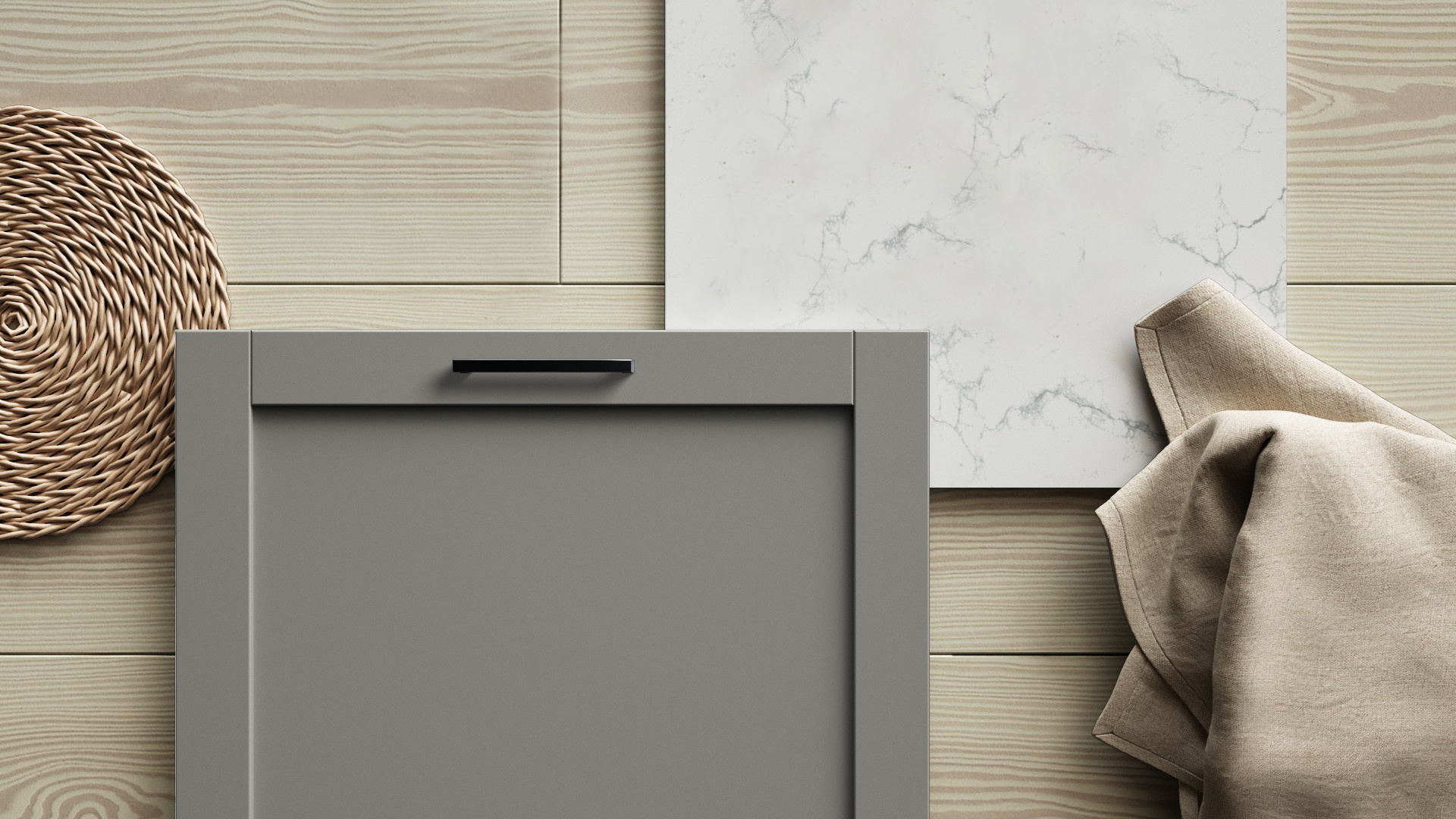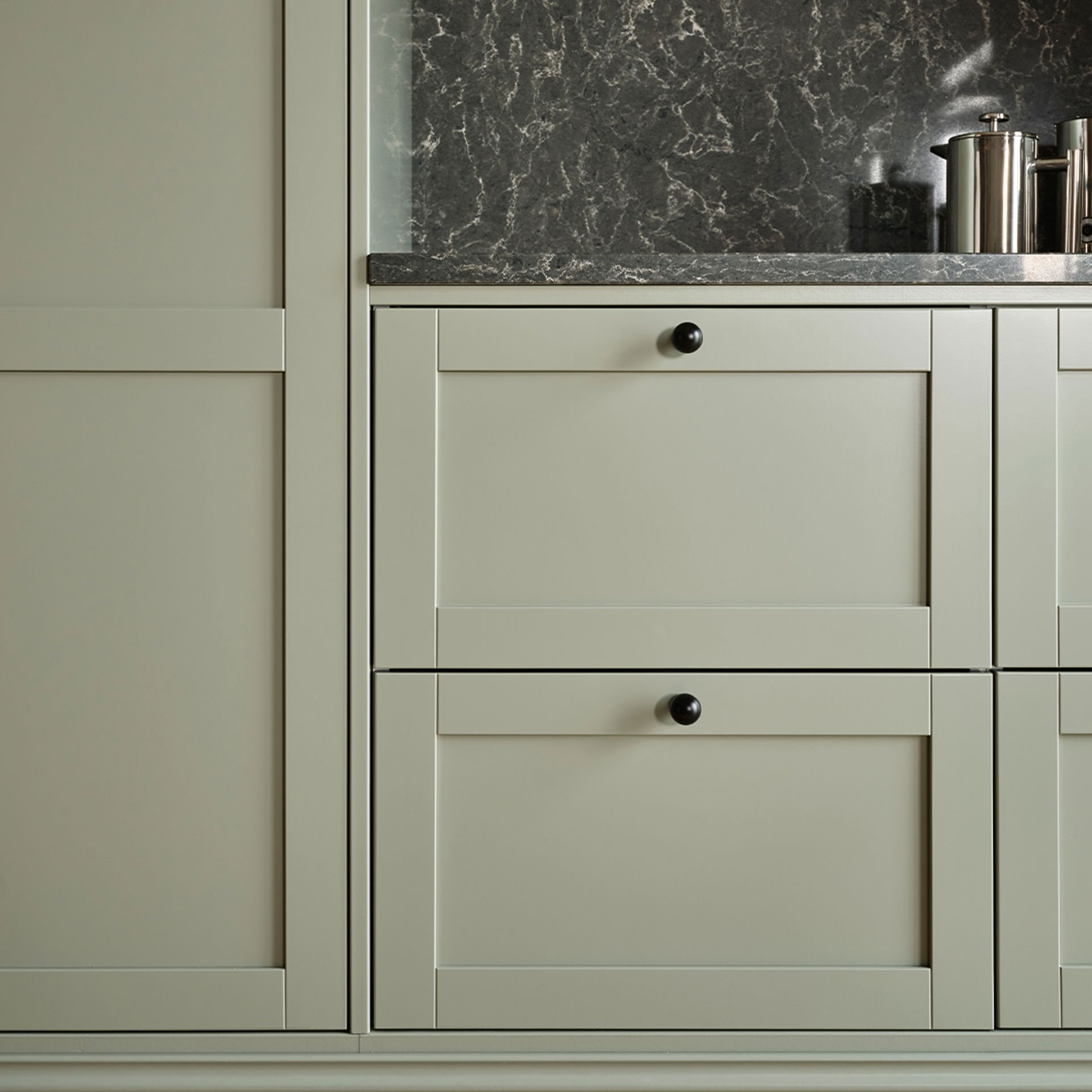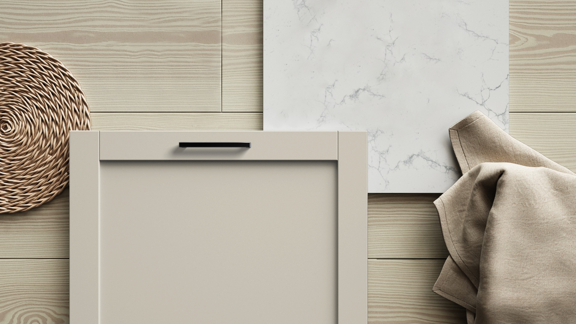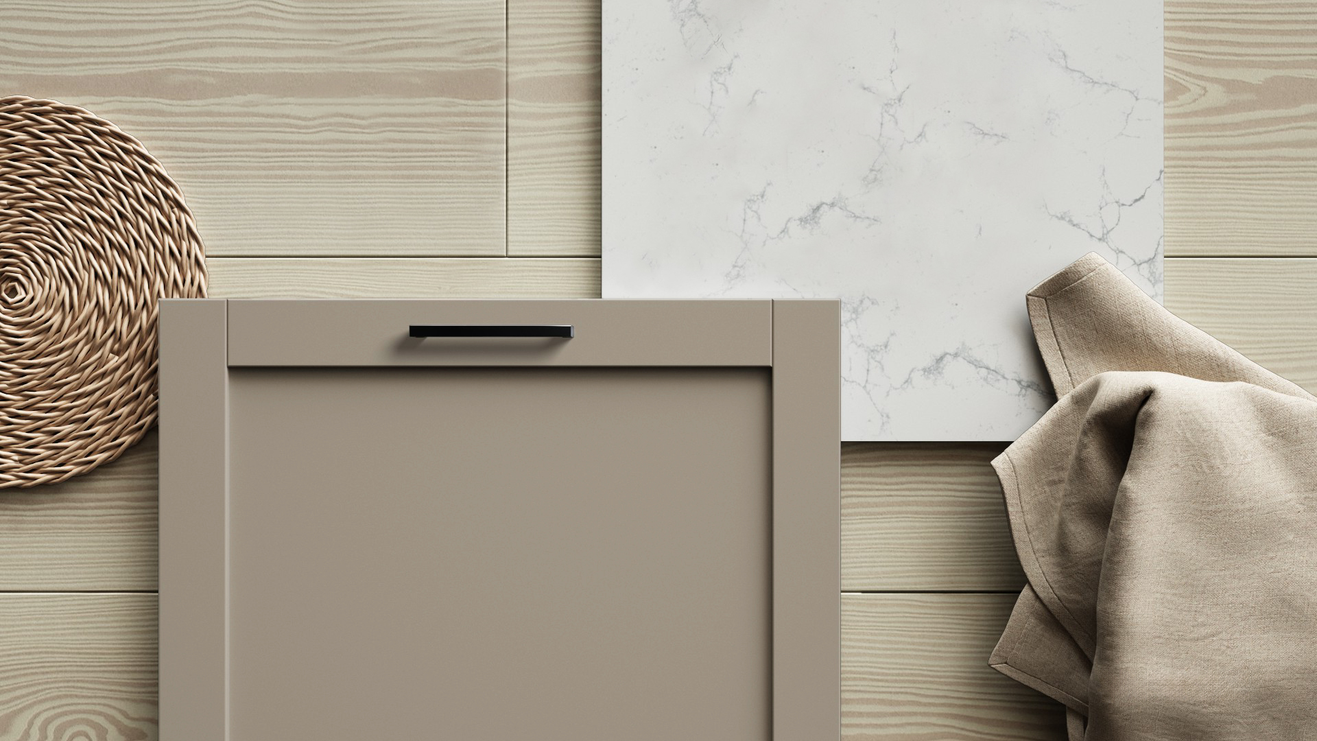 Med sin malte overflate og stilrene ramme skaper den et kjøkken som føles både lunt og tidløst – der hver detalj bidrar til helheten.