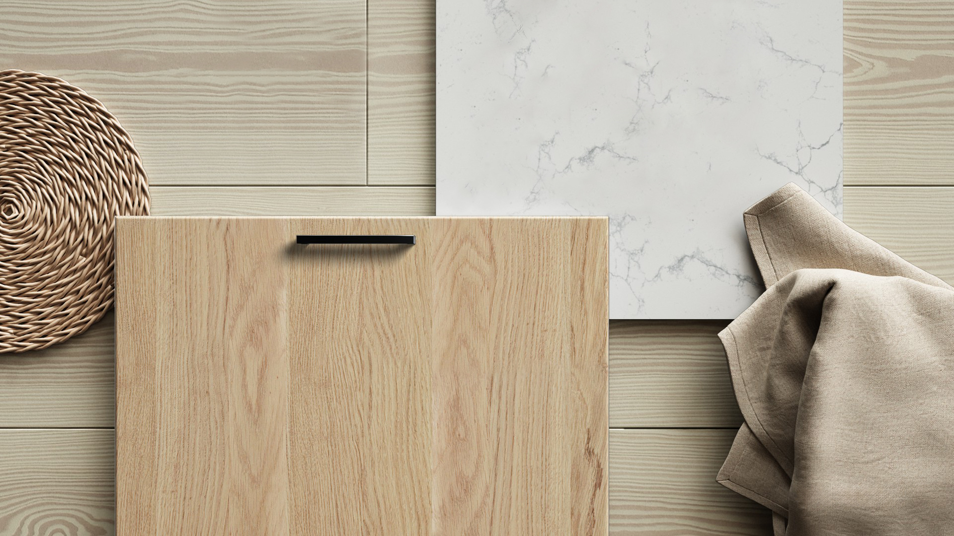 Døren Ilse har et mykt og harmonisk uttrykk som forsterker den naturlige følelsen i rommet. Den svanemerkede melaminoverflaten er slitesterk, lett å holde ren og finnes i både beige, grå, hvitpigmentert eik og brun eik for et varmt og helhetlig inntrykk. Passer for deg som ønsker et enkelt og tidløst kjøkken med en naturlig og varig følelse.